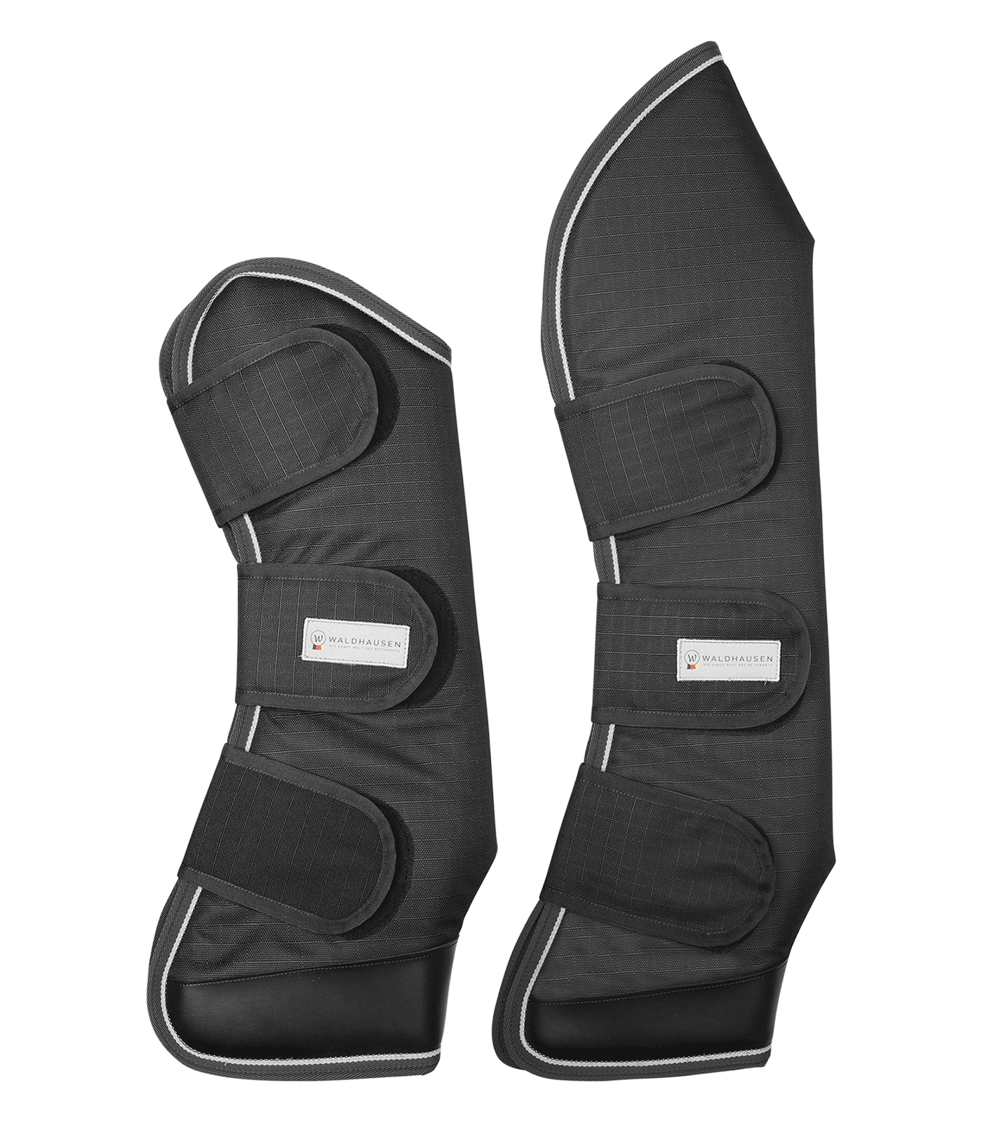 Anatomisch geformte Transportgamaschen mit drei starken Klettverschlüssen für optimalen Halt am Pferdebein. Bester Schutz durch 1,5 cm dicken, stoßabsorbierenden Schaum im Inneren und hohen Schnitt. Weiches Fleece-Innenfutter für optimalen Tragekomfort. Extra strapazierfähiges Außenmaterial mit Verstärkung am Ballenbereich.
