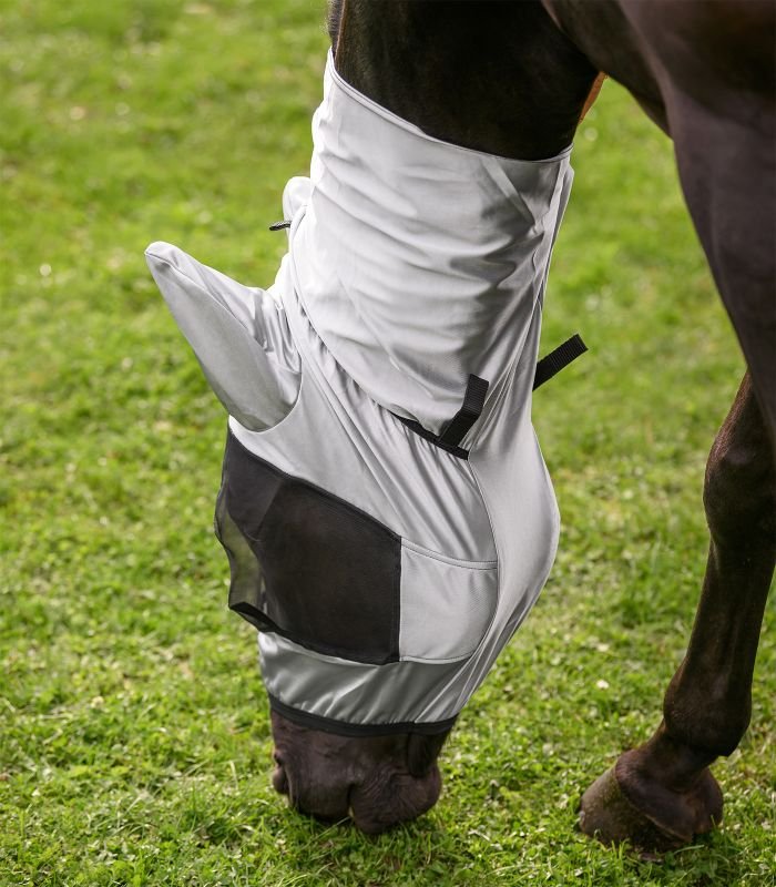 Die Ekzemer Fliegenmaske überzeugt durch ihren großzügigen, feinmaschigen Netzeinsatz, der eine klare Sicht ermöglicht und gleichzeitig optimalen Schutz bietet. Formgebende Abnäher sorgen für eine ideale Passform. Zur Befestigung kann die Maske mithilfe von Klettverschlüssen sicher an der passenden Ekzemerdecke fixiert werden – kompatibel sowohl mit der Premium- als auch mit der Basic-Variante.