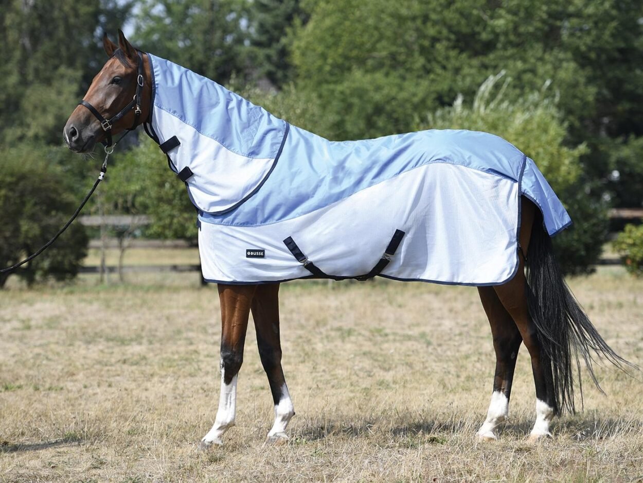 Sicherer Schutz der Mähne und des für Juckreiz anfälligen Bereiches vom Widerrist bis zum Kopf. Aus atmungsaktivem Funktions-Faserstoff. Der Bauchgurt sorgt für guten Halt.