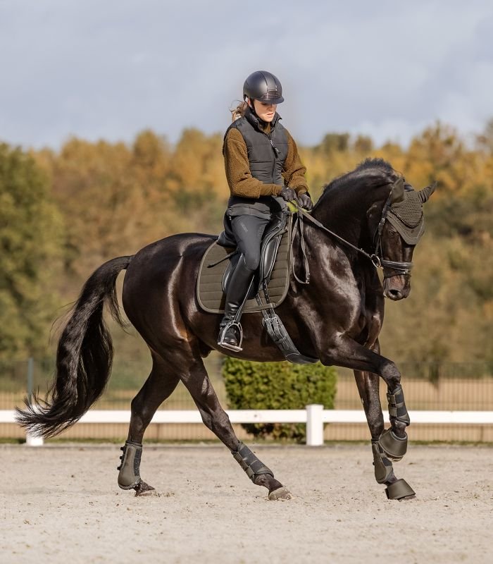 Hochwertige Fliegenohren passend zu unserer St. Gallen Cord Kollektion. Ein besonders stilvolles Detail ist der Cord-Einsatz. Das elastische Material an den Ohren bietet dem Pferd einen hohen Tragekomfort. Ein anthrazit farbenes Metallplättchen sowie eine Zierkordel runden das Design ab.