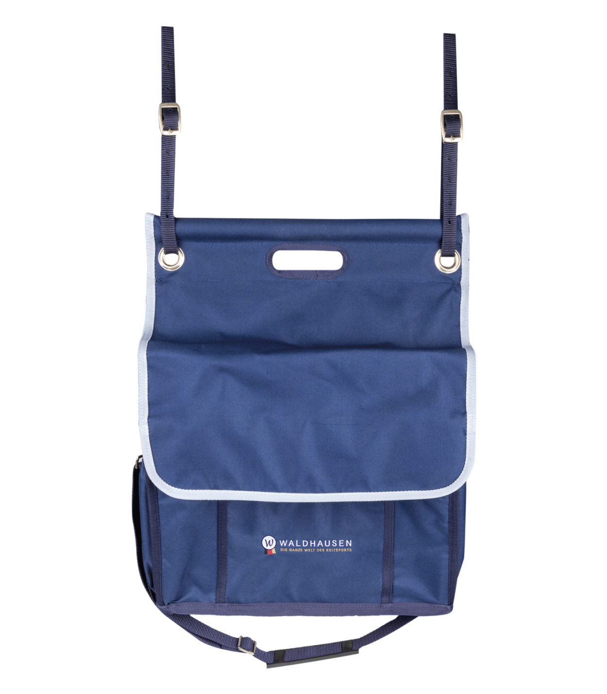Stabiler Stall Carry mit Sattelhalter, 2 Haken für Zaum oder Halfter und eine fixierbare Vorrichtung, um zu verhindern, dass der Zaum auf den Boden schleift. Ablagefläche für Zubehör – passend für 15423 Waldhausen Multibag ECO, 40 L und großer Putzbox-Halterung – passend für die 15410 Putzbox.